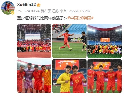 3月24日訊 U22國足球員徐彬更新社媒,慶祝球隊擊敗韓國。